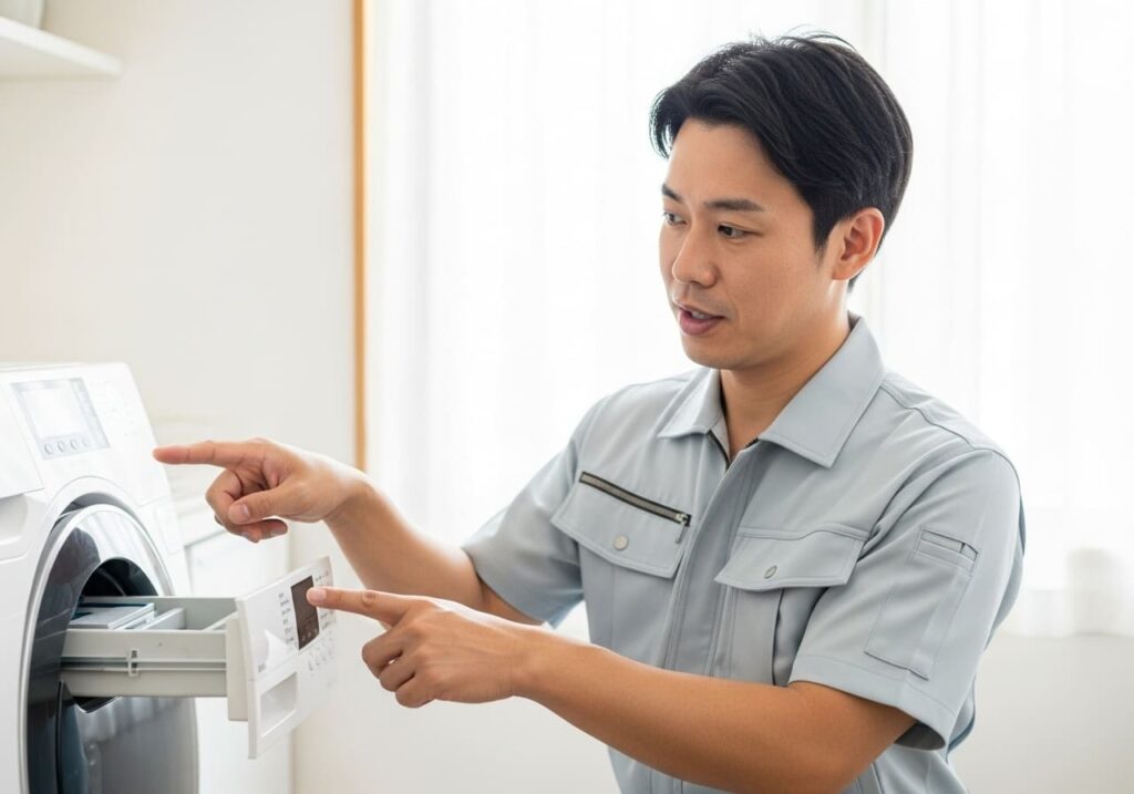 - 排水ホースの「折れ・詰まり・ヘドロ」の確認と掃除法